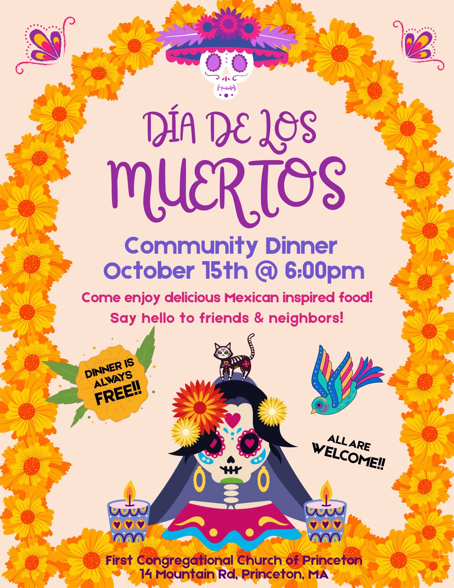 10-15 “Dia De Los Muertos” Community Dinner at 6pm