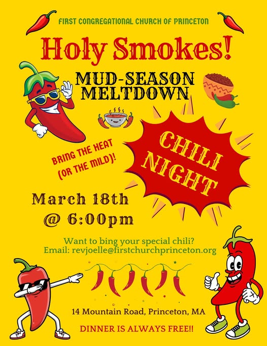 3-18 Holy Smokes Chili Night Community Dinner, Wednesday 6pm